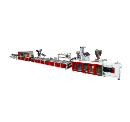 Линия по производству профилей с коническим двухшнековым экструдером позволяет изготавливать пластиковые дверные и оконные профили из ПВХ, композитные профили из стали и пластика и различные декоративные профили.
