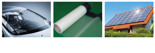 PVB/SGP plyonkasi: qurilish sendvich shishasida, avtomobil sendvich shishasida, o‘q o‘tkazmaydigan shishada, tovush o‘tkazmaydigan shishada va boshqa shu kabilarda keng qo‘llaniladi. Yaxshi funktsional xavfsizlikni ta'minlaydi va tashqi kuchlar va chayqalishlar natijasida shikastlanishlar tufayli shisha sinishi oldini oladi; Shunday qilib, ovoz izolatsiyasi ultrabinafsha nurlardan himoya qilish funksiyasiga ega, rangli yoki shaffof plyonkadan tayyorlanishi mumkin.
